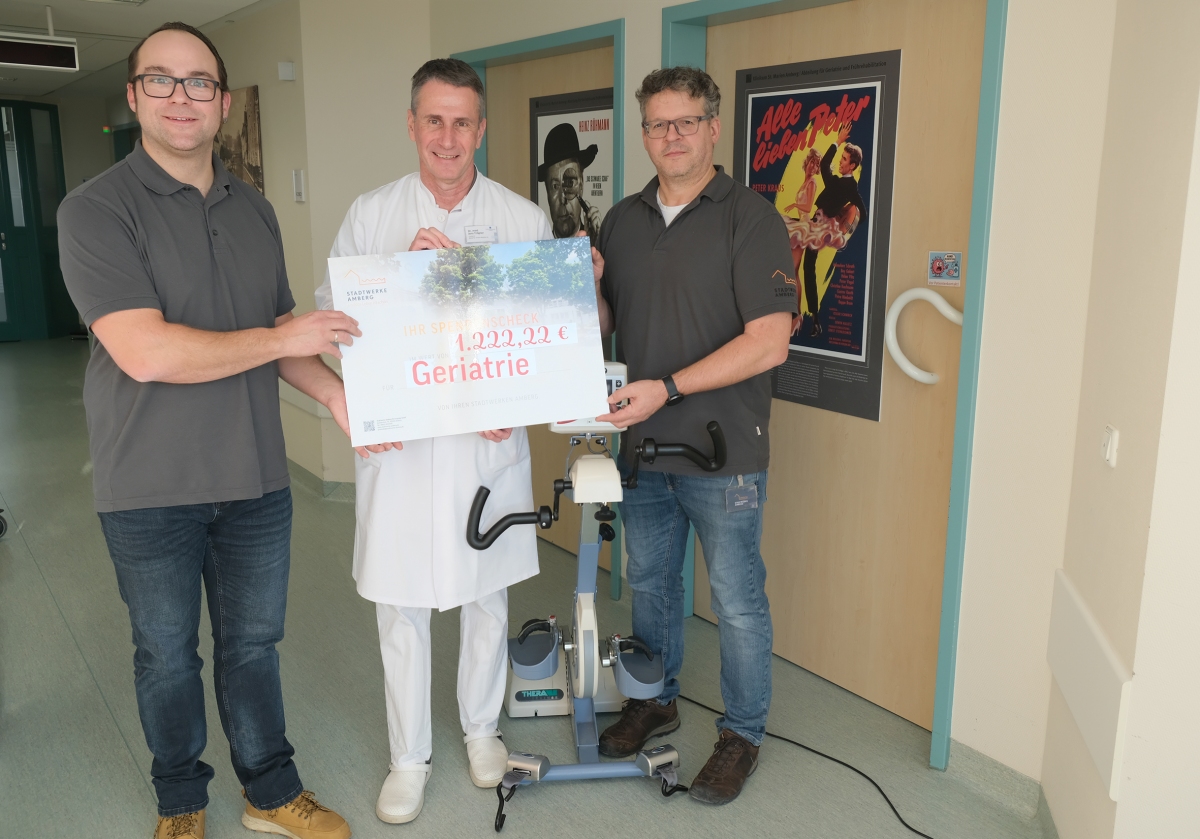 Der Erlös ging nun an die Klinik für Geriatrie und Frührehabilitation am Klinikum St. Marien Amberg. Chefarzt Dr. Jens Trögner nahm die Spende dankend entgegen und weiß auch schon wofür sie genutzt werden wird. „Die Summe ist der Startschuss für ein Projekt, das uns sehr am Herzen liegt. Wir planen unser Ergometer mit einer Software aufzurüsten, wodurch unsere Patienten virtuell Landschaften erkunden können. Das können die Pyramiden in Ägypten, eine Waldlandschaft oder auch Radltouren durch Städte sein. Wir gehen davon aus, dass dies eine große Motivation für unsere Patienten ist sich zu bewegen, besonders wenn man durch Amberg radeln kann", schmunzelt Dr. Trögner.