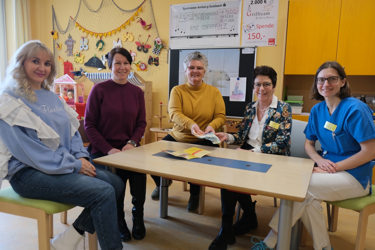„Wir haben selbst gebacken, gebastelt und Punsch verkauft und mit dem Erlös wollen wir etwas für Kinder in der Region tun. Da ich früher selbst am Klinikum im Bereich Lagerlogistik gearbeitet habe, ist mir gleich FLIKA in den Sinn gekommen", erzählt Dozentin Bianca Schliep vom ISE Sprach- und Berufsbildungszentrum in Amberg, die die Spende gemeinsam mit den beiden Kursteilnehmerinnen Liubov Yemelianova und Olena Zadorozhna an FLIKA-Vorsitzende Margit Meier überreicht hat. „Im Namen der Kinder und den Familien sagen wir herzlichen Dank", so auch stellvertretende Vorsitzende, Dr. Birgit Prey.