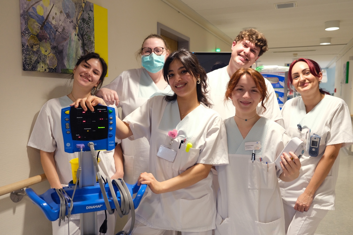 Die Auszubildenden lernen hier wie der Alltag auf Station funktioniert und übernehmen alle Tätigkeiten einer examinierten Pflegefachkraft auf Station. Dazu gehören neben der Versorgung der Patienten auch organisatorische Tätigkeiten wie beispielsweise die Teilnahme und Ausarbeitung von Visiten. „Natürlich schaut uns dabei immer jemand über die Schulter", erklären Jonas, Belinda, Antonia, Samia, Katja und Luisa. In diesem Jahr beteiligt sich die Station F3 am Projekt. Auch für die Pflegefachkräfte auf der Station ist es eine tolle Erfahrung zu sehen, wie bei den Auszubildenden das Selbstvertrauen und Verantwortung für ihre Tätigkeiten wachsen.