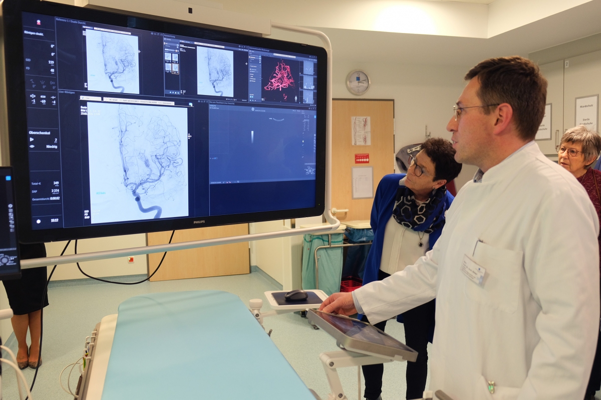 Und eine weitere Neuanschaffung gibt es im Bereich der Radiologie. „Wir verfügen nun über eine neue Angiographieanlage der neuesten Generation. Bedeutet konkret für unsere Patienten – es liegt bei der Darstellung von Gefäßen künftig eine noch bessere Bildqualität bei gleichzeitig niedriger Strahlendosis vor, eine hohe Detailauflösung sowohl bei 2D- als auch bei 3D-Aufnahmen und es ermöglicht alle diagnostischen und radiologisch interventionellen Eingriffe einschließlich neuroradiologischer Diagnostik und Therapie", so Prof. Dr. Ritter.
